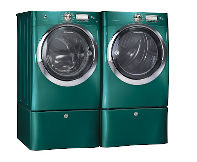I grew up with a top loading machine and I remember helping my mom get the laundry done- I'd always end up half in and half out of the washer trying to get everything. Obviously when I got taller, the problem went away but I've started to really enjoy the look of the semi-new front loading machines. There are more of them in colors other than black and white than there are in top loading ones. I mean.....if I had these babies I'd probably look forward to doing my laundry.