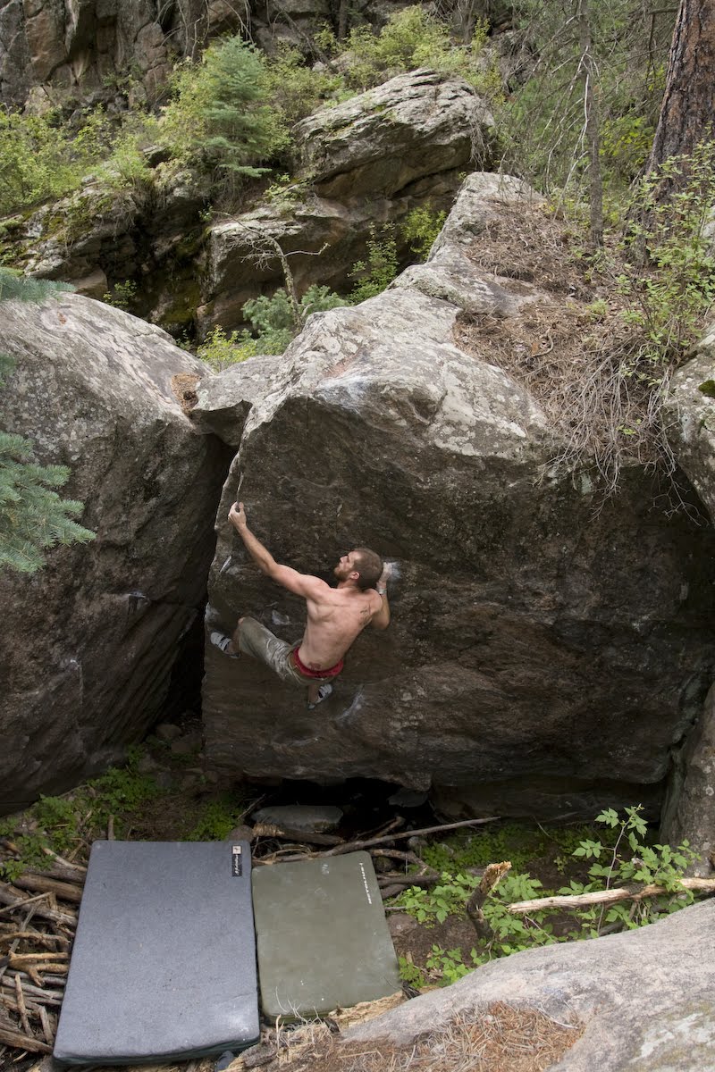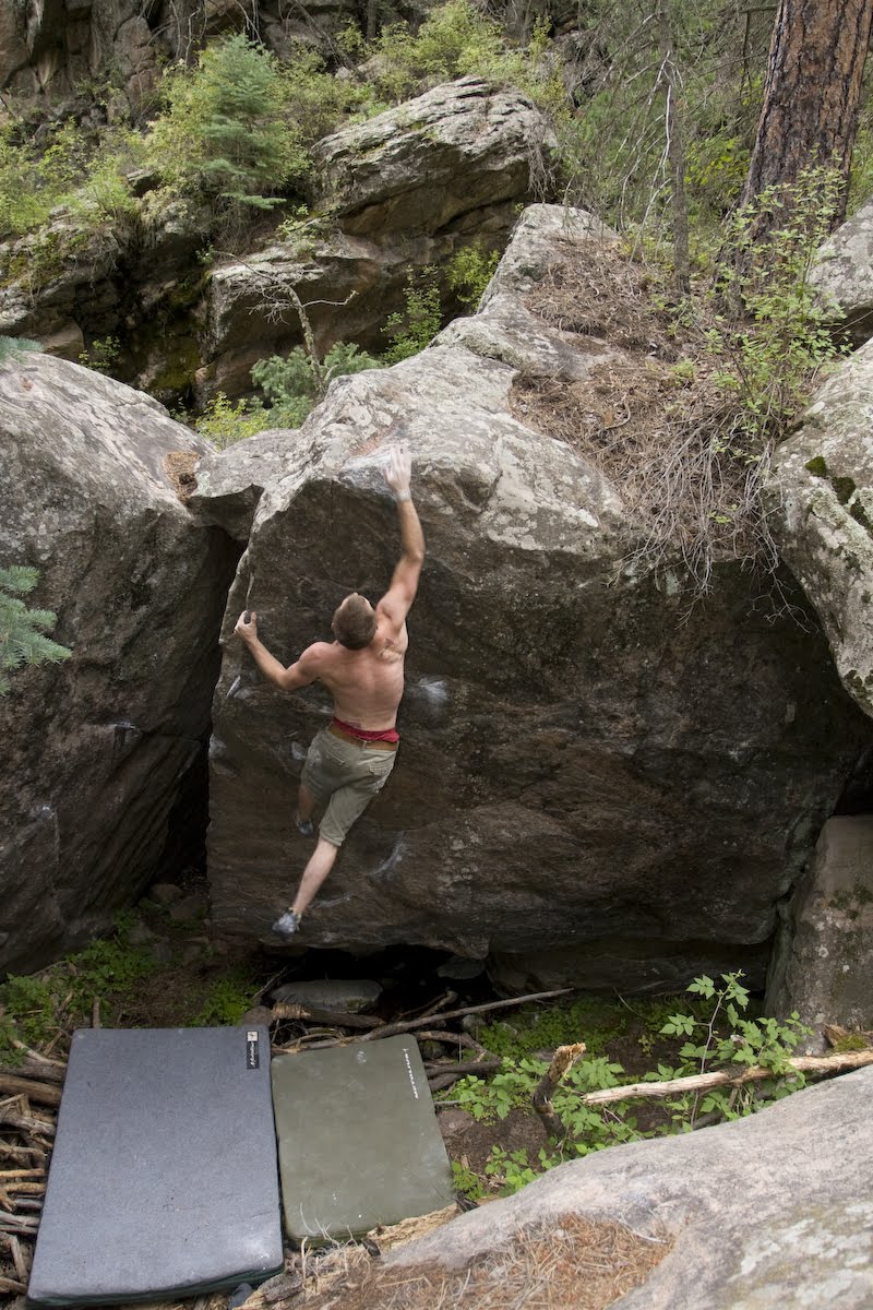 Okay so these pictures are probably too big, and if it bothers people I can take them down, resize them, and rehost them, but here's some stills my friend Hayden took of me climbing my first V7 in Newlin Creek, CO. It's a really cool problem, half compression, half crimps, with a big ass throw at the end.